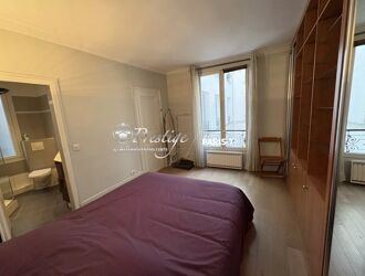 Rue Pergolèse, à deux pas de l’Avenue Foch et de la Porte Dauphine, au 6ᵉ et dernier étage avec ascenseur d’un élégant immeuble post-haussmannien, découvrez ce studio de 14,58 m² entièrement aménagé et équipé. Fonctionnel et optimisé, il se compose d’une pièce de vie lumineuse avec cuisine aménagée et équipée, ainsi que d’une salle d’eau avec WC. Traversant Sud-Ouest / Nord-Est, il bénéficie d’une belle luminosité et d’une vue dégagée sur les toits de Paris. Double vitrage et volets roulants électriques assurent confort et tranquillité.